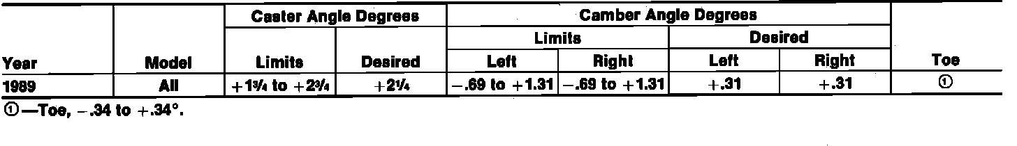 Front Wheel Alignment Specifications: