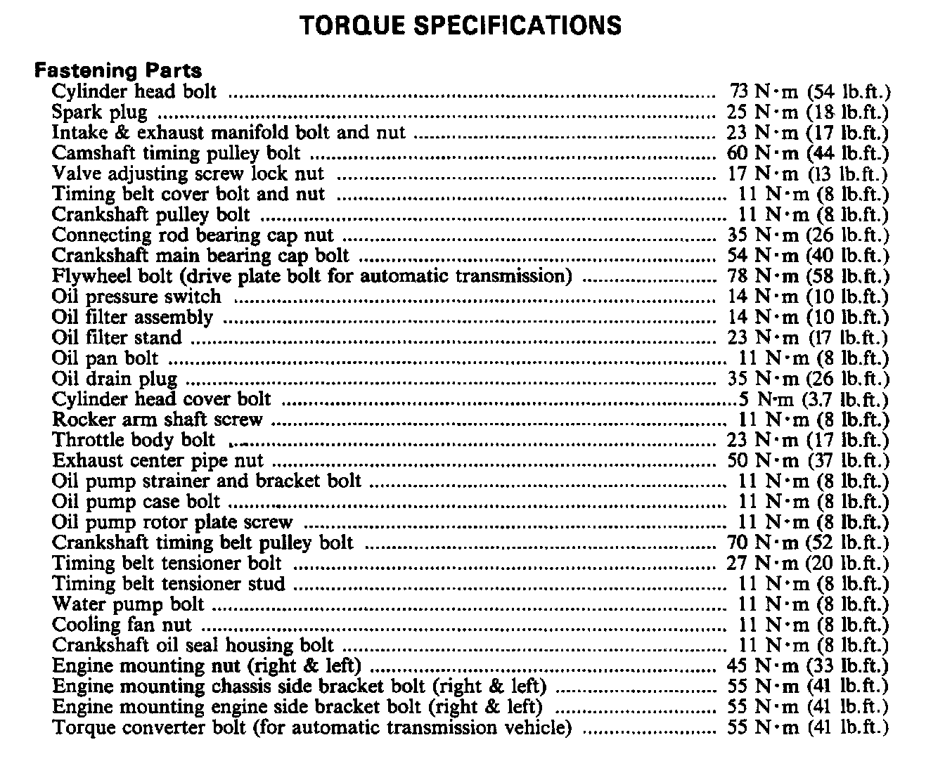 Torque Specifications: