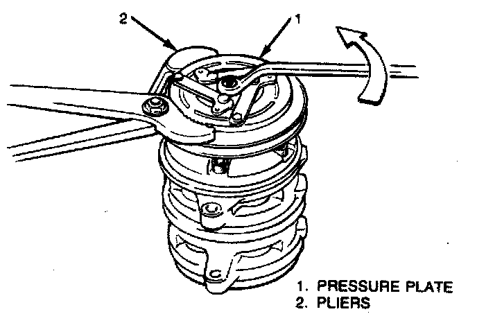 a. Adjust the clearance between the pressure plate and drive clutch by putting the shims on the compressor shaft.
