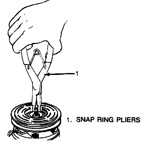Disconnect the coil lead wire from the compressor housing using snap ring pliers, remove the snap ring.