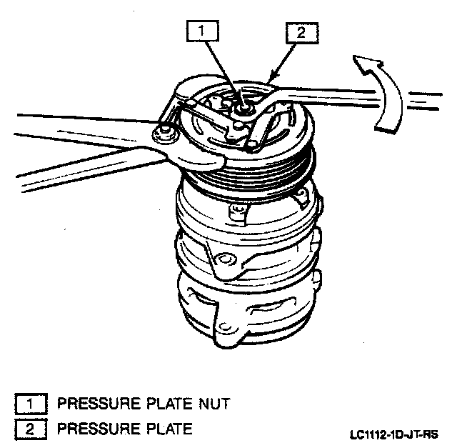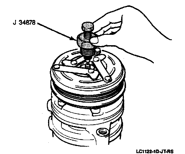 The following instructions for removal of the magnetic clutch were written (and the art drawn) as a bench procedure, with the compressor assembly removed from the vehicle.Remove or Disconnect