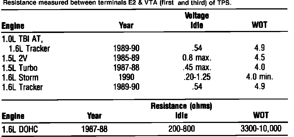 Throttle valve at idle position 2.0-6.5K Ohms