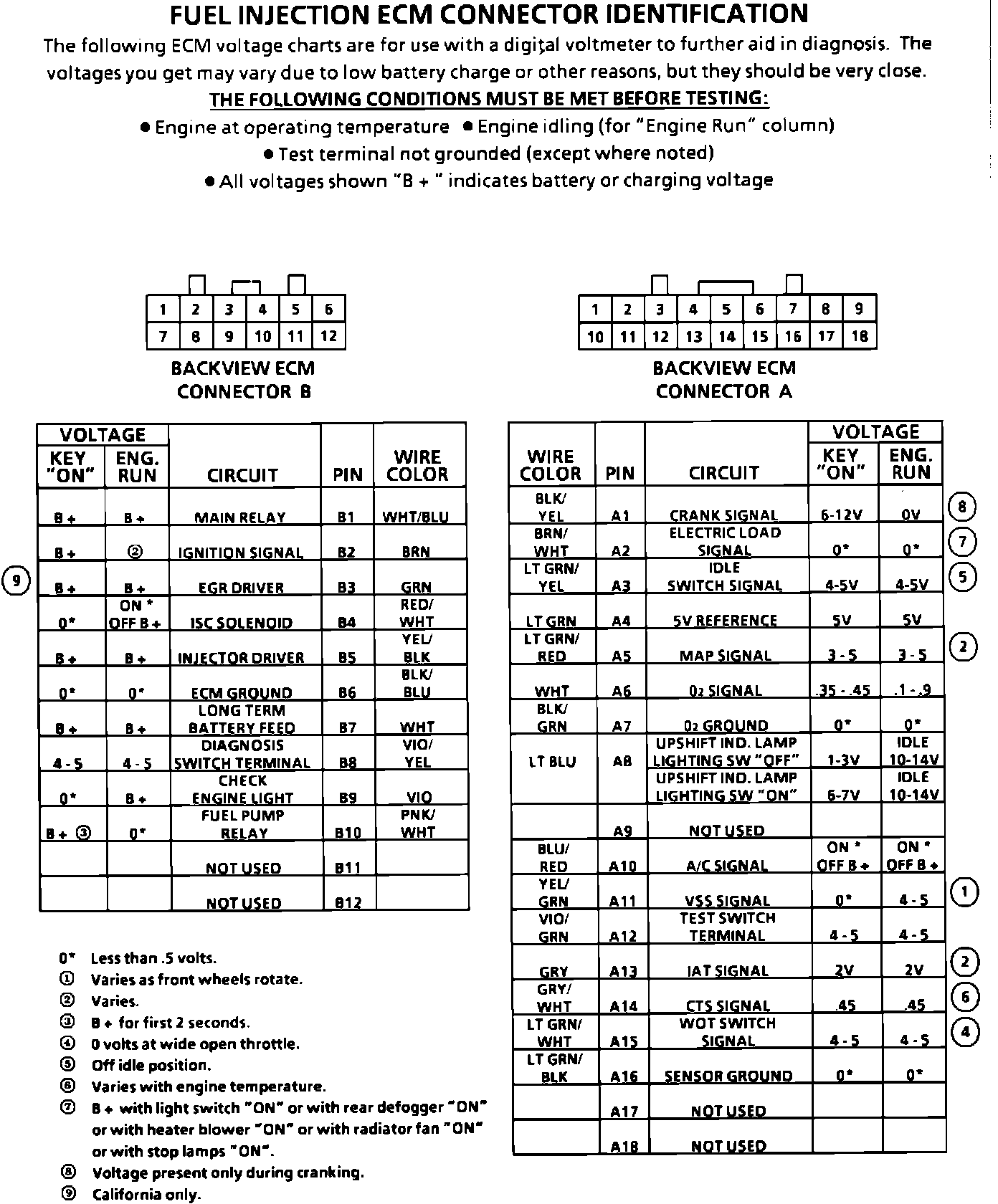 ECM Connector Pin Out: