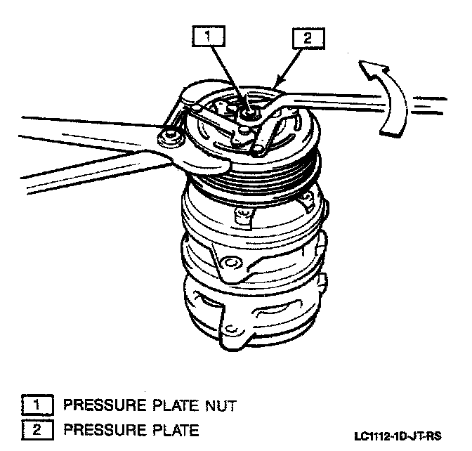 1. Pressure plate and clutch pulley for wear and scoring. Replace as necessary.