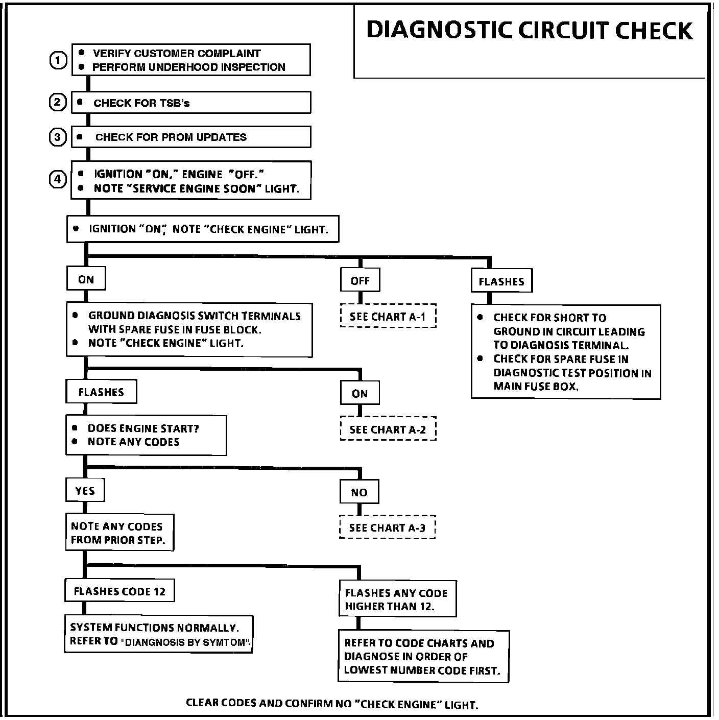 b. Since this is the starting point for all diagnostic procedures or finding the cause of an emissions test failure, always begin here and always follow the flow chart as directed.