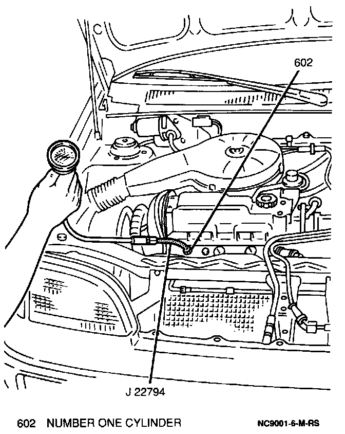 9. Remove the J 22794 and compression gage from the engine.