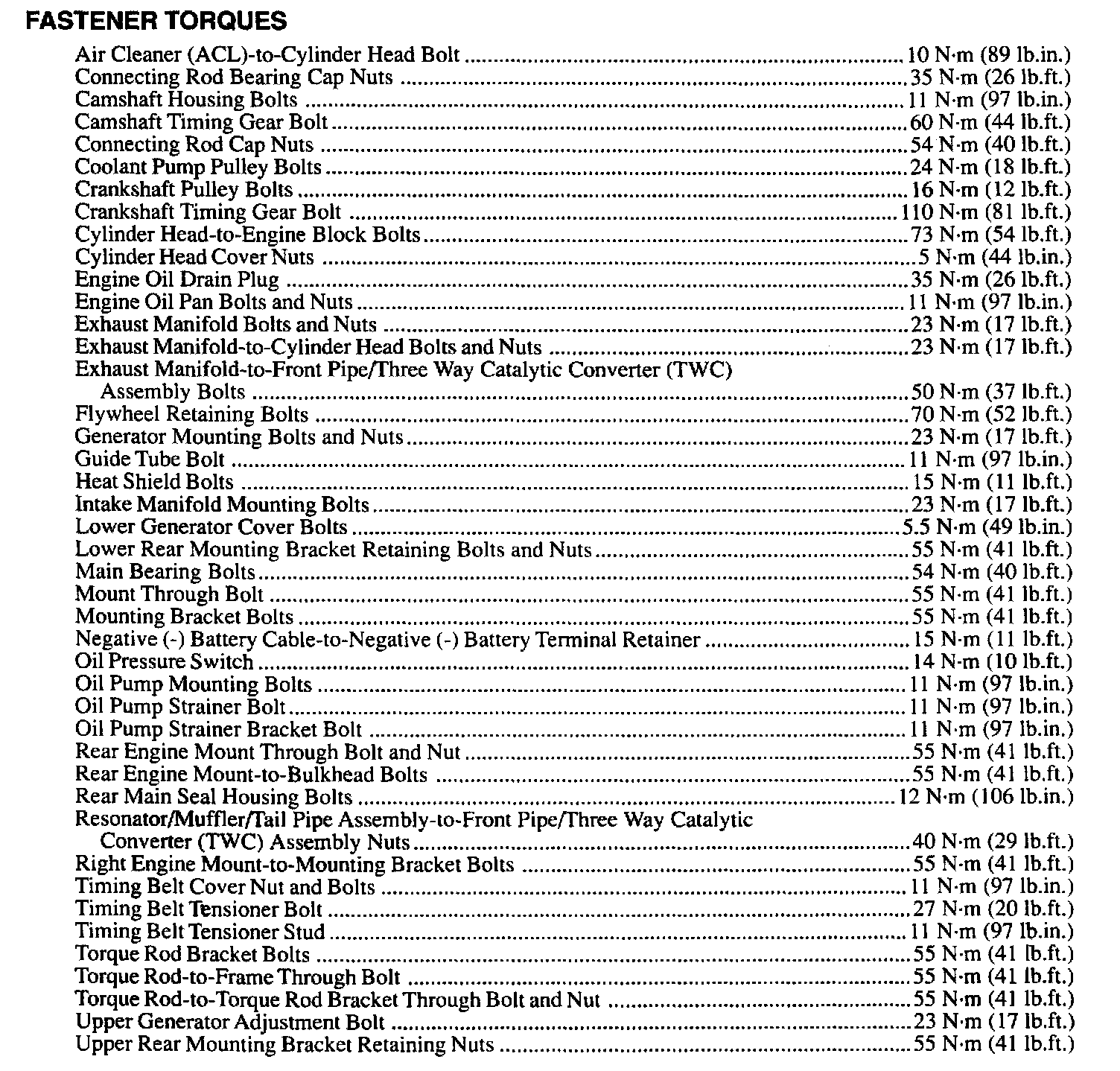 Torque Specifications: