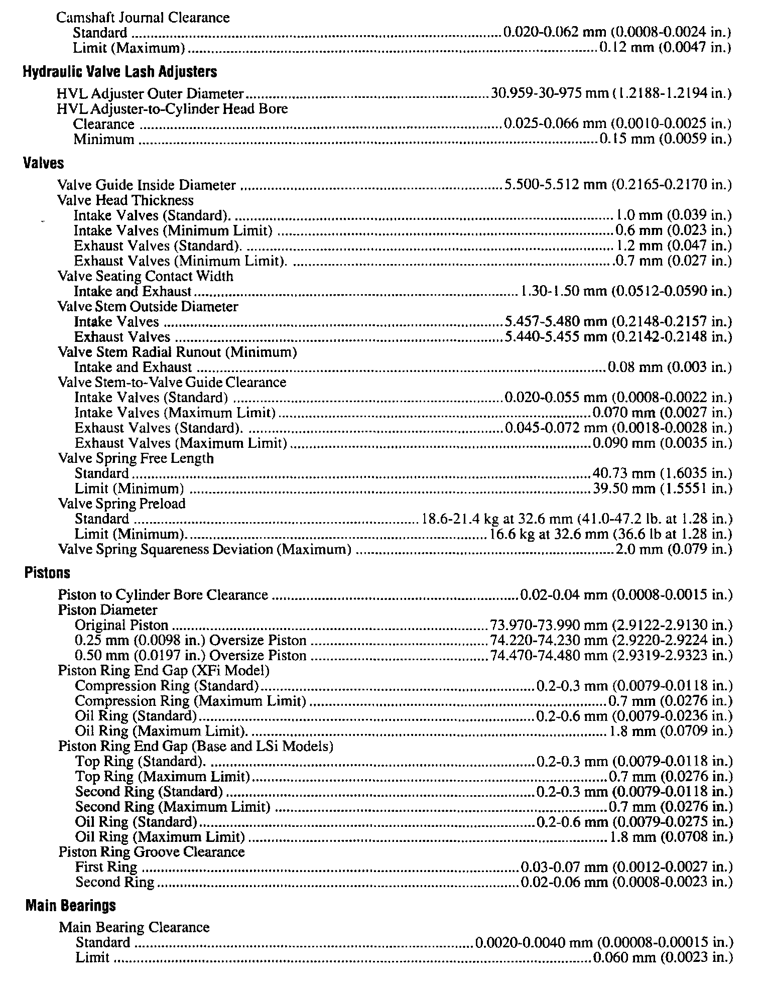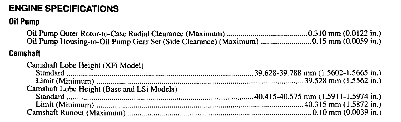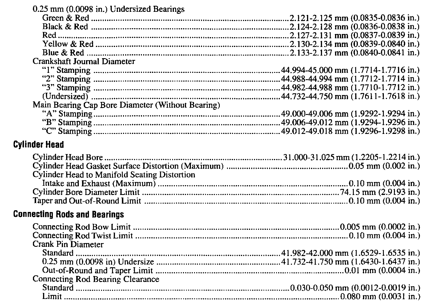 Continued Engine Specifications: