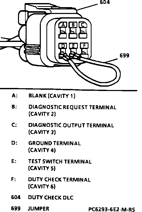8. Connect a fused jumper lead from cavity "4" to cavity "5" of duty check DLC.