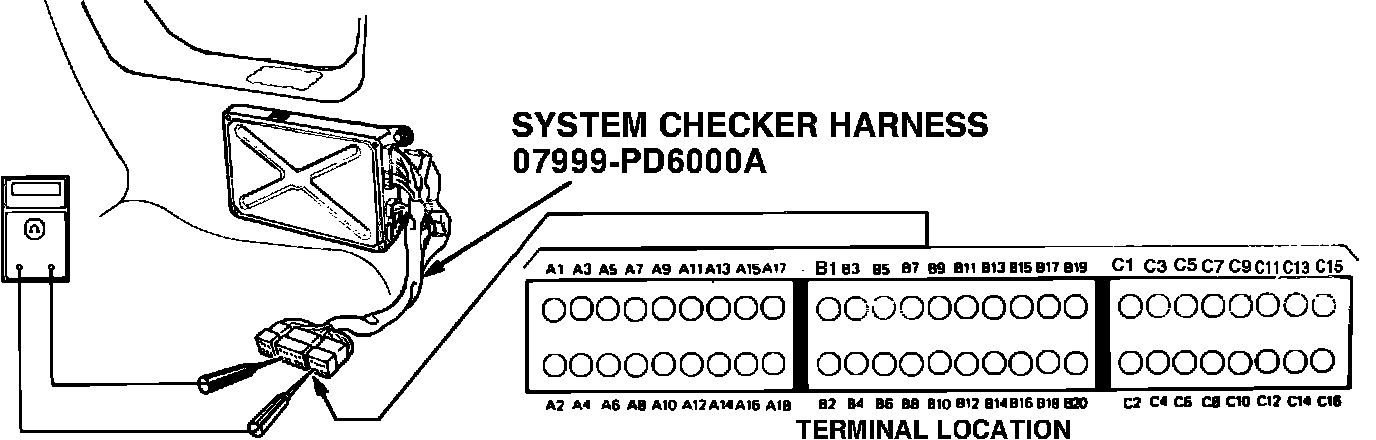 3. Disconnect control unit connectors, then connect the system checker harness part between control unit and wire harness connector, Fig. 23.