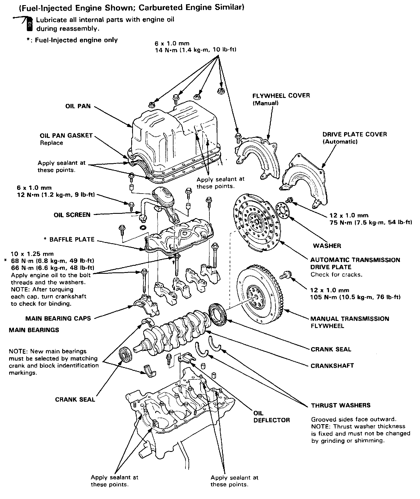 Main Bearing Caps, Oil Pan, Flywheel/Flex Plate: