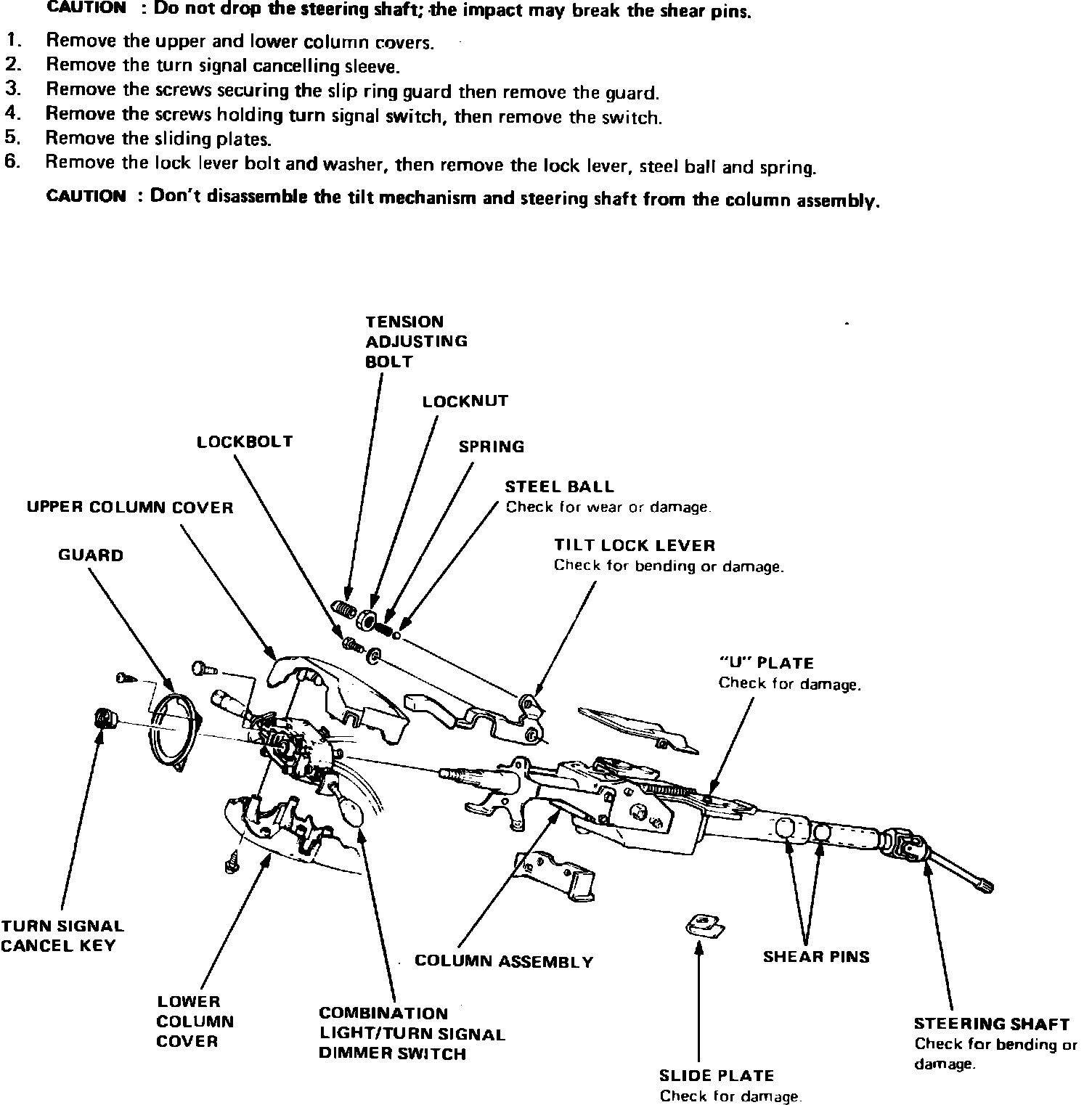 Fig. 6 Steering column exploded view. 1984-87 Prelude: