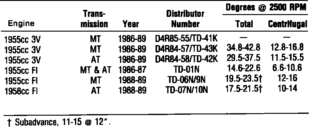 Fig. 016 Distributor Timing Advance Specifications: