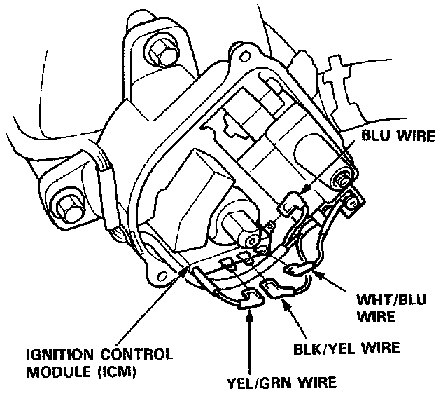 2. Disconnect the BLK/YEL, WHT/BLU, YEL/GRN, and BLU wires from the ICM.
