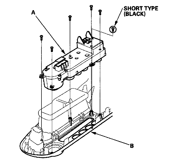 - Be sure to install the short black self-tapping screw in the position shown. If a longer screw is used, it will damage the instrument panel.