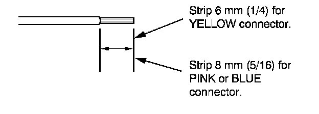 7. If you are using a yellow splice connector, strip about 6 mm (1/4 inch) of insulation off the ends of both wires. If you are using a pink or blue splice connector, strip off about 8 mm (5/16 inch) of insulation.