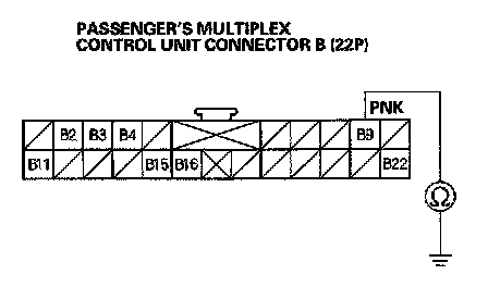6. Check for continuity between No.9 terminal of passenger's multiplex connector B (22P) and body ground.