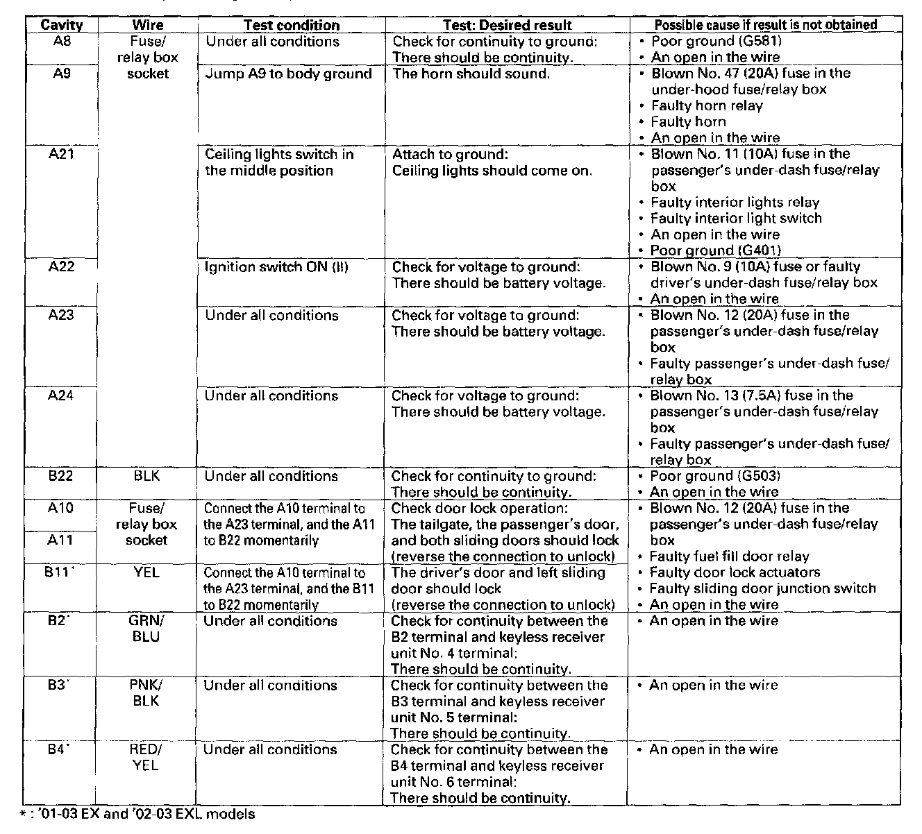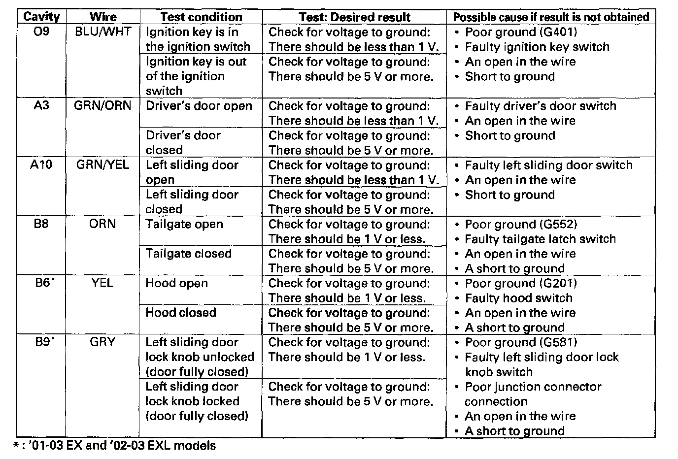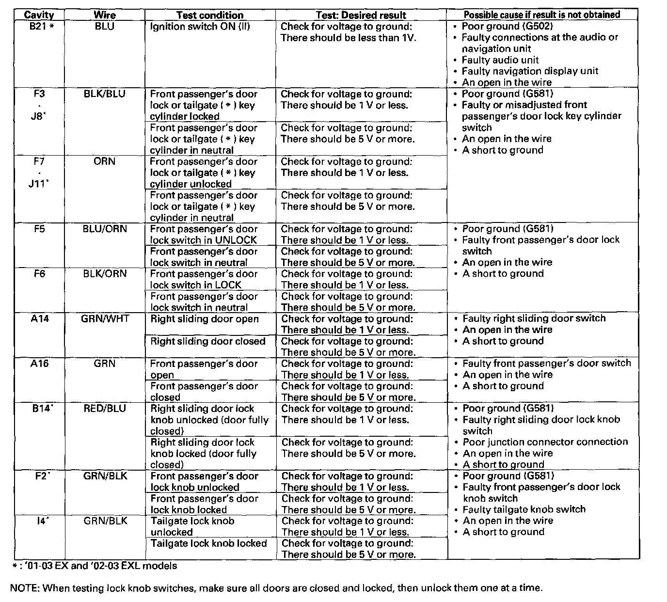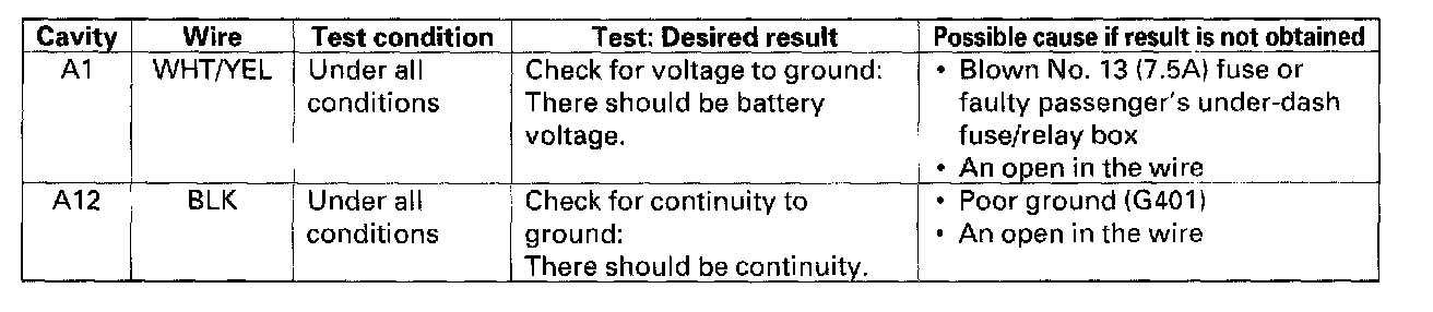Home >> Honda >> 2000 >> Odyssey EX V6-3.5L >> Repair and Diagnosis >> Body and Frame >> Locks >> Power Locks >> Power Door Lock Control Module >> Testing and Inspection
