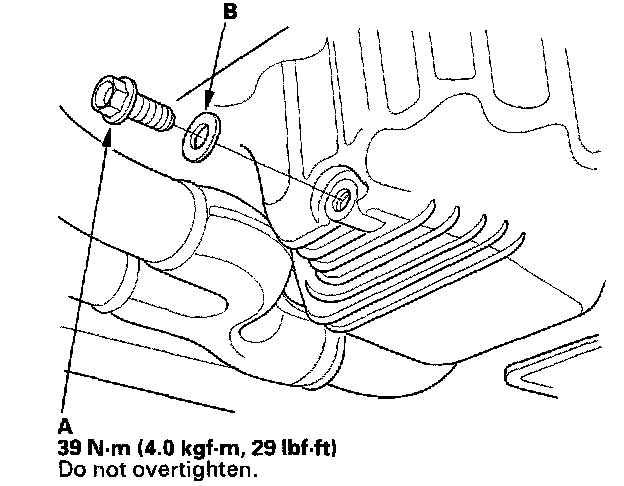 3. Reinstall the drain bolt with a new washer (B).