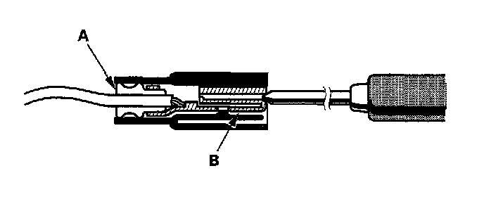 3. If you cannot get to the wire side of the connector or the wire side is sealed (A), disconnect the connector and use the probe the terminals (B) from the terminal side. Do not force the probe into the connector.