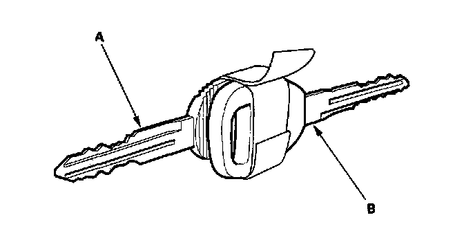 5. Tape the donor vehicle's ignition key head-to-head to the test vehicle's temporary key (A). The PCM wilt recognize the code from the donor vehicle's key (B) and allow you to start the engine with the temporary key.