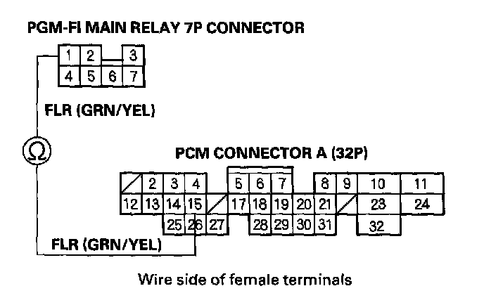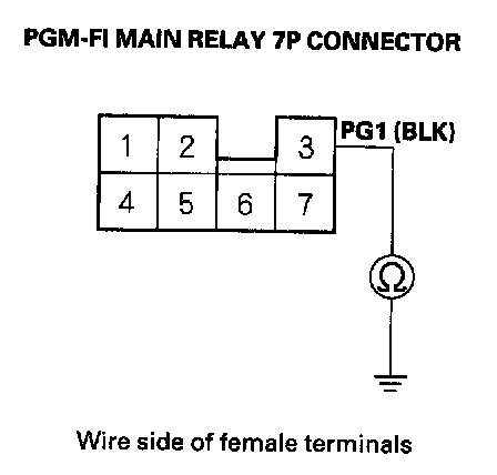 2. Check for continuity between body ground and the PGM-FI main relay 7P connector terminal No.3.