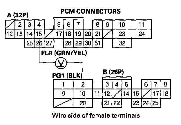 11. Reconnect the PCM connector A (32P) and the PGM-FI main relay 7P connector.
