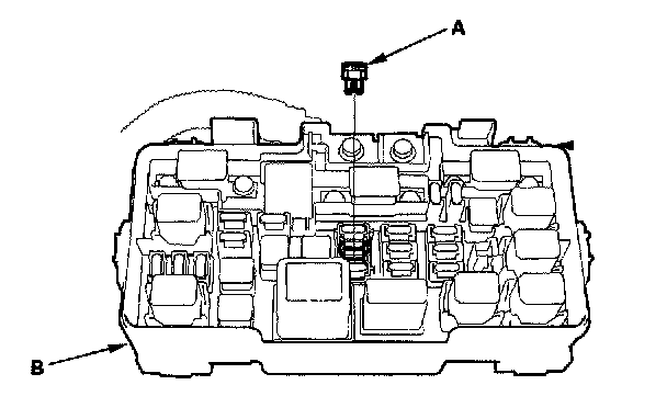 2. Remove the No.6 ECU (ECM/PCM) (15A) fuse (A) from the under-hood fuse/relay box (B) for 10 seconds.