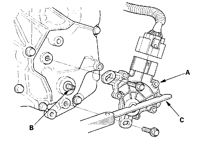 8. Install the transmission range switch (A) gently on the control shaft (B) while holding the N position with the 2.0 mm (0.08 inch) blade (C).