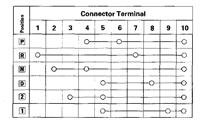 5. If there is no continuity between any terminals, check the transmission range switch installation. If the transmission range switch installation is OK, replace the switch.