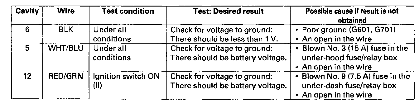 4. Reconnect the connector and make these input tests at the connector.