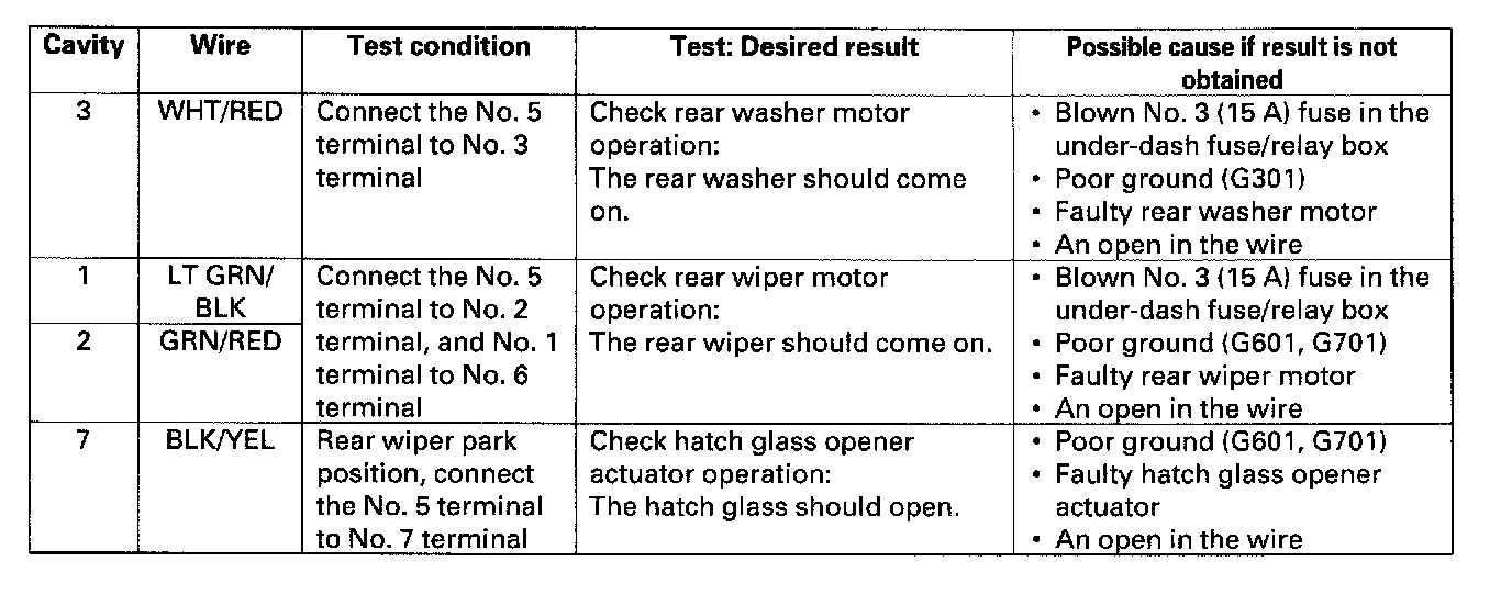 Home >> Honda >> 2002 >> CR-V EX 4WD L4-2.4L >> Repair and Diagnosis >> Wiper and Washer Systems >> Wiper Control Module >> Testing and Inspection >> Rear Wiper Control Unit Input