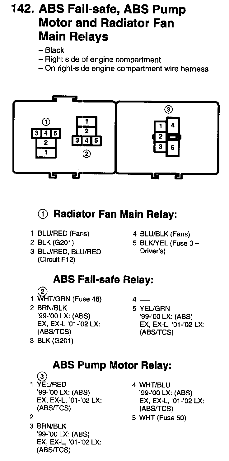 142. ABS Fall-safe, ABS Pump Motor And Radiator Fan Main Relays:
