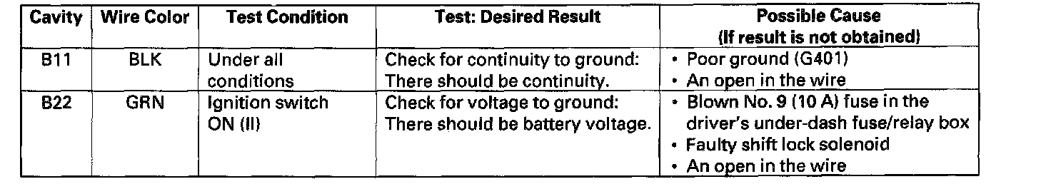 Home >> Honda >> 2002 >> Odyssey EX V6-3.5L >> Repair and Diagnosis >> Transmission and Drivetrain >> Automatic Transmission/Transaxle >> Shift Interlock >> Shift Interlock Control Module >> Testing and Inspection