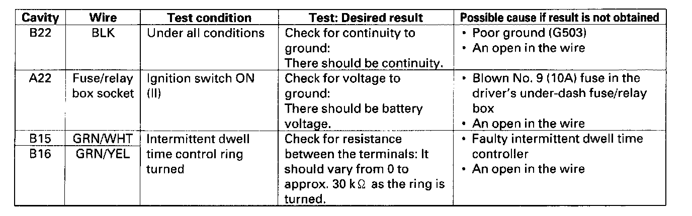 1. Before testing the wiper/washer control functions, troubleshoot the multiplex control system.