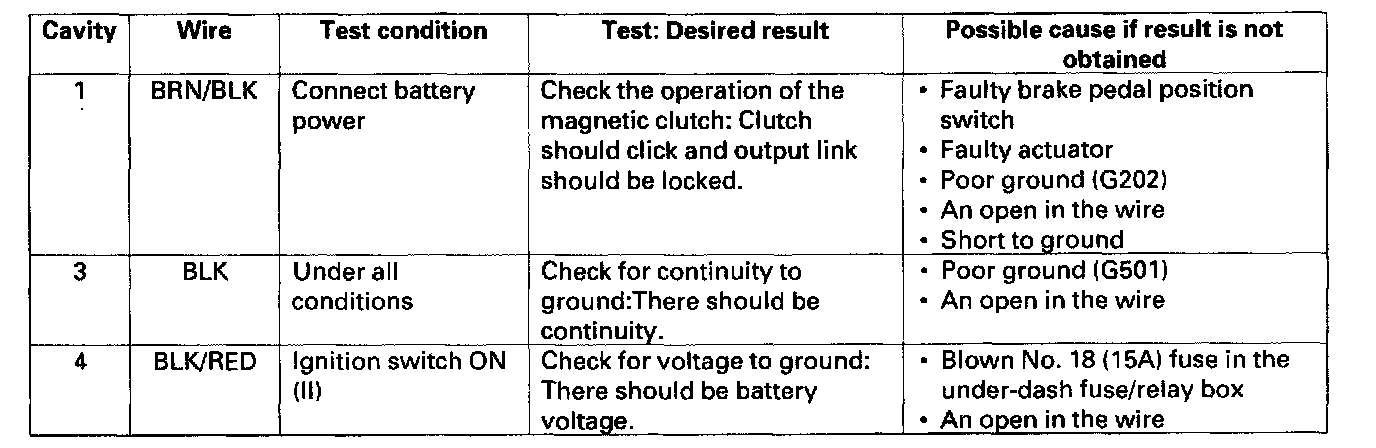 - If all the input tests prove OK, the cruise control unit may by faulty. Substitute a know-good cruise control unit and retest. If the system works properly, replace the cruise control unit.