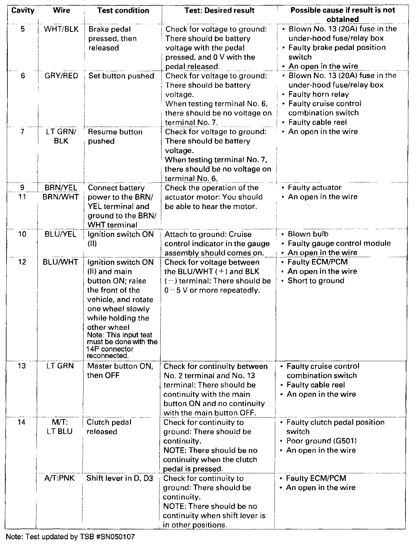 Cruise Control Unit Input TestSRS components are located in this area. Review the SRS component locations and precautions and procedures before performing repairs or service.