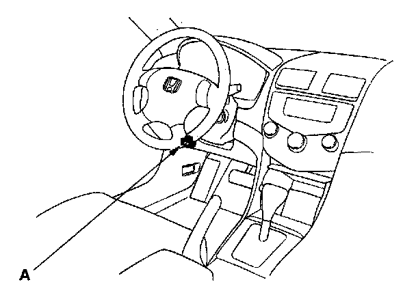 2. Connect the HDS or the Honda Interface Module (HIM) to the data link connector (DLC) (A) located under the driver's side of the dashboard.