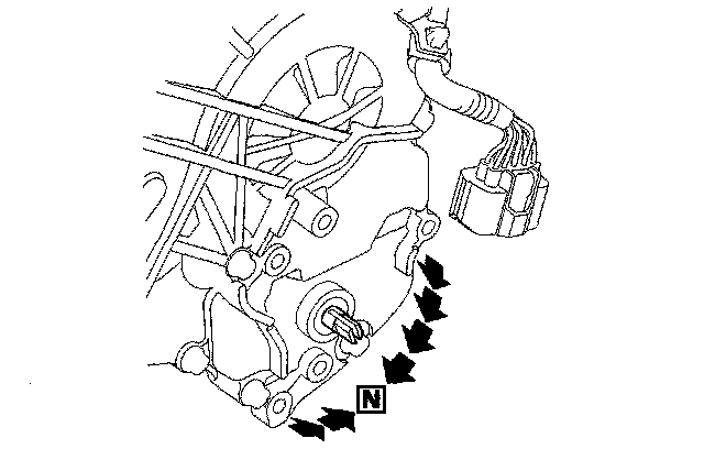 6. Make sure the selector control shaft is in the N position. If necessary, move the shift lever to the N position.