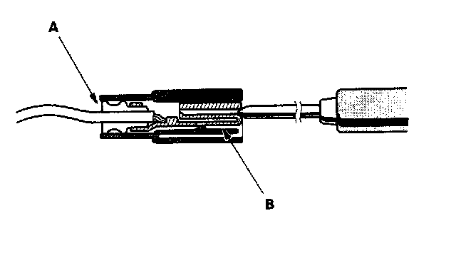 3. If you cannot get to the wire side of the connector or the wire side is sealed (A), disconnect the connector, and probe the terminals (B) from the terminal side. Do not force the probe into the connector.