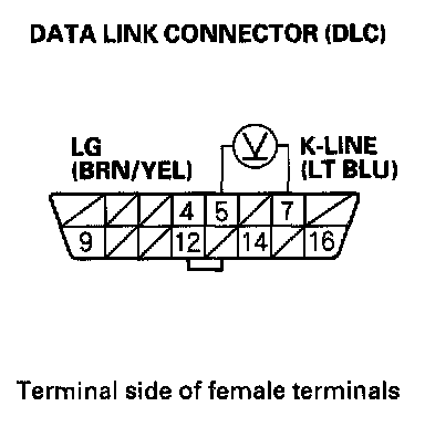 13. Measure voltage between DLC terminals No. 5 and No. 7.