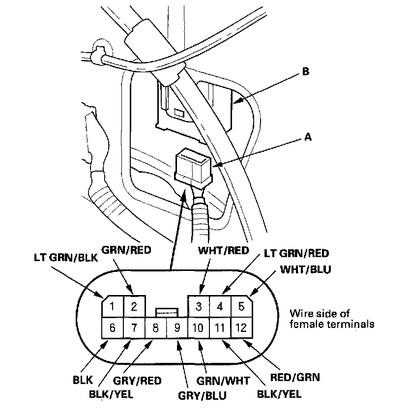 2. Disconnect the 12P connector (A) from the control unit (B).