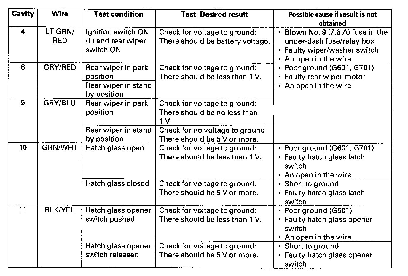 Home >> Honda >> 2003 >> CR-V 2WD L4-2.4L >> Repair and Diagnosis >> Wiper and Washer Systems >> Wiper Control Module >> Testing and Inspection >> Rear Wiper Control Unit Input