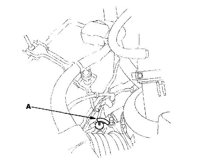 3. Remove the dipstick (yellow loop) (A) from the transmission, and wipe it with a clean cloth.
