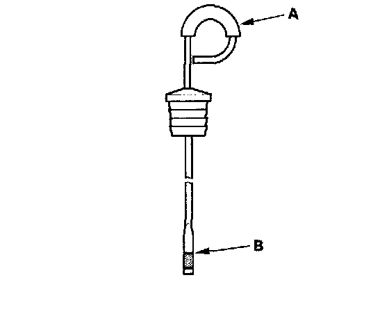 5. Remove the dipstick (A), and check the fluid level. It should be at the upper mark (B).