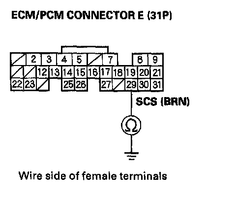 16. Check for continuity between ECM/PCM connector terminal E29 and body ground.