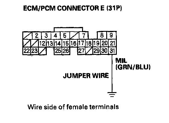 21. Connect ECM/PCM connector terminal E31 to body ground with a jumper wire.