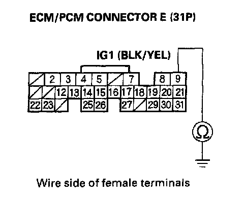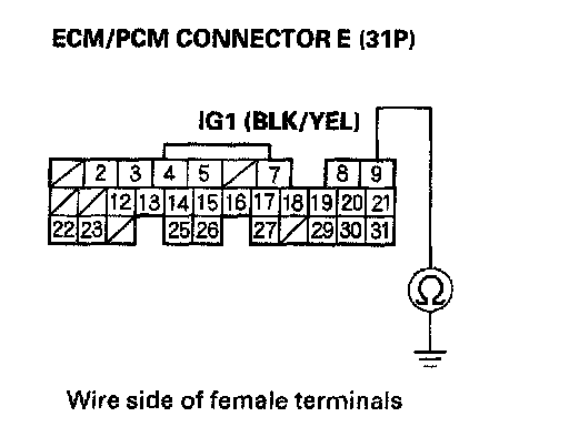 18. Check for continuity between ECM/PCM connector terminal E31 and body ground.