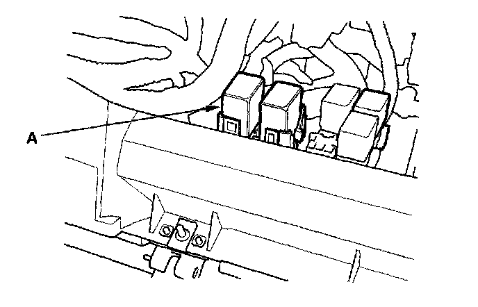40. Remove the glove box, and remove PGM-FI main relay 2 (A) from the under-hood fuse/relay box.