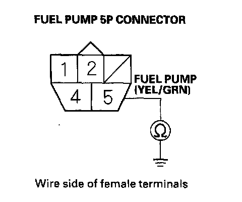 47. Check for continuity between fuel pump 5P connector terminal No.5 and body ground.